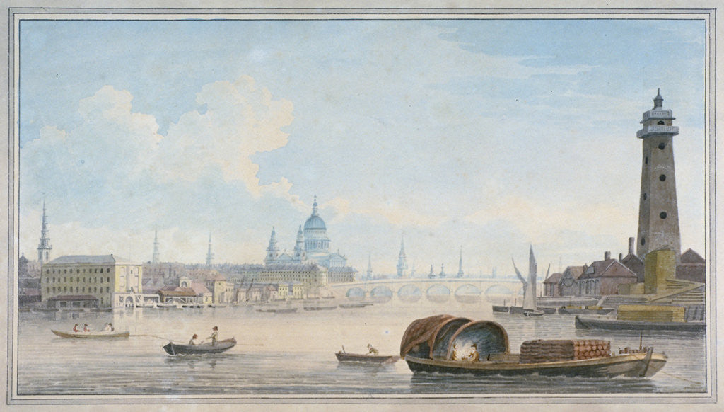River Thames looking towards Blackfriars Bridge, London, 1818. View from the south side of the River Thames with rowing boats on the river.