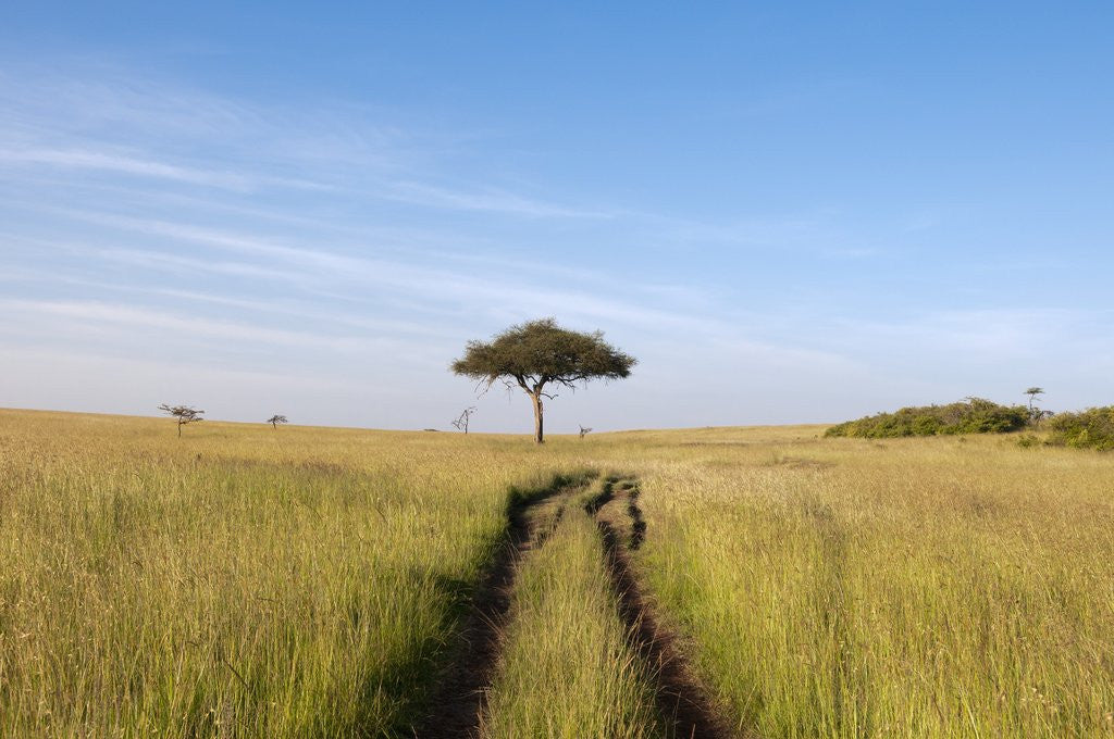 Product images of Road on savannah and Acacia, Masai Mara, Kenya