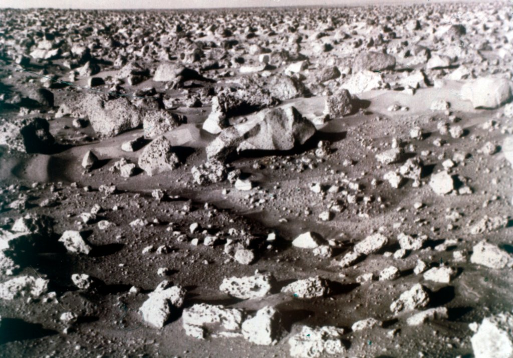 Rock-strewn Martian surface, Viking Lander mission, 1970s