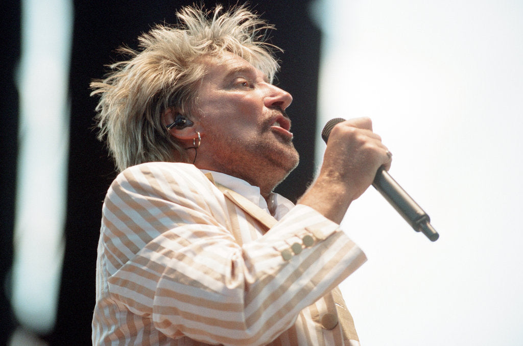 Rock star Rod Stewart performs some of his most famous hits during a gig at Villa Park. 23rd July 1995.