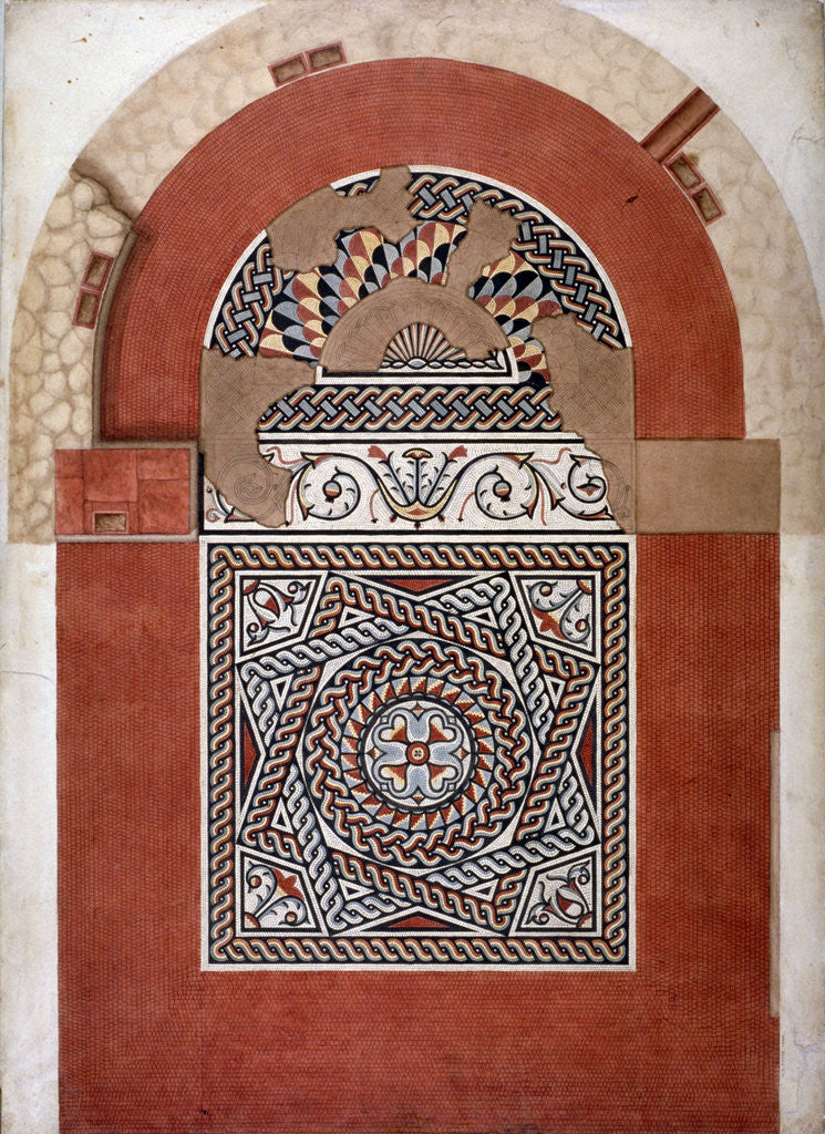 Roman mosaic pavement dating from 300 AD, found in Bucklersbury, City of London, 1869. An exhibit from the Guildhall Museum.