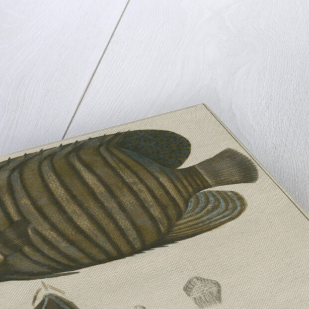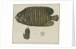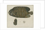 Marine biological studies of the Royal or regal angelfish, here styled Chaetodonte diacanthio, now Pygoplites diacanthus. This fish is a native of the Indo-Pacific region. Side view of the fish, with details of the head seen from the front and two smaller details. Plate from the monograph Brief van Pieter Boddaert...Behelzende eene naauwkeurige Beschrijving...van den Tweedoornigen Klipvisch... (Amsterdam 1772). Inscribed: 'V Br. G. Dadelbeek pinxit. F.de Bakker fecit.'