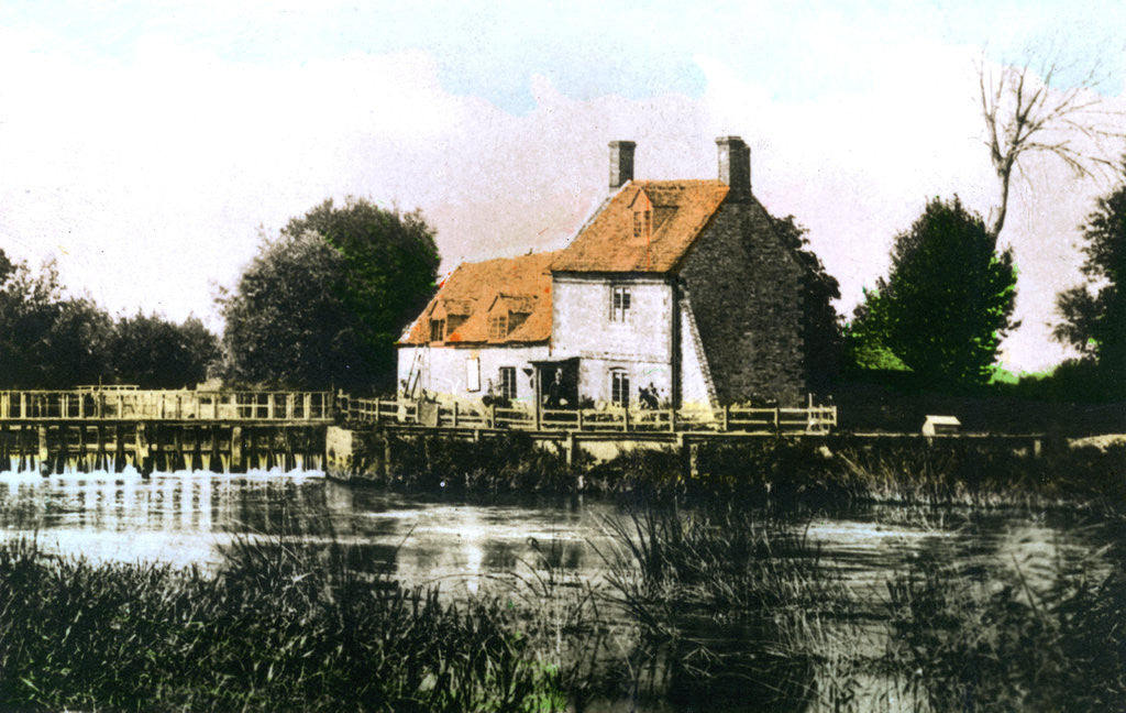 Rushey Weir, River Thames, 1926. From the River Valleys set of hand-coloured cigarette cards issued with Army Club Cigarettes, Cavanders Ltd, 1926.