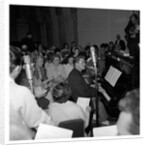 Russ Conway (1925-2000) performing to a crowd, photo Harry Hammond (1920-2009). Black and white photography. UK, 1959-60.