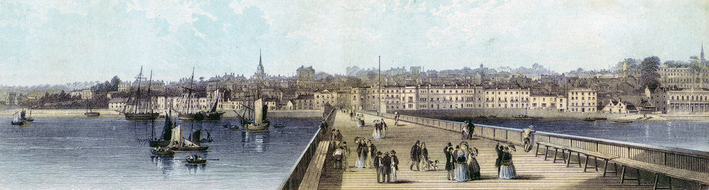 Ryde from the pier, Isle of Wight, 19th century. View of the town of Ryde with people promenading on the pier.