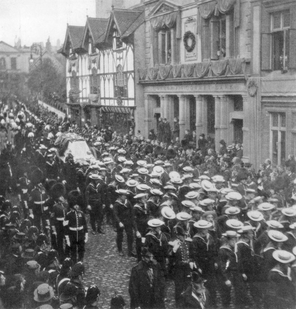 Sailors pulling the gun carriage carrying the coffin of Queen Victoria, Windsor, Berkshire