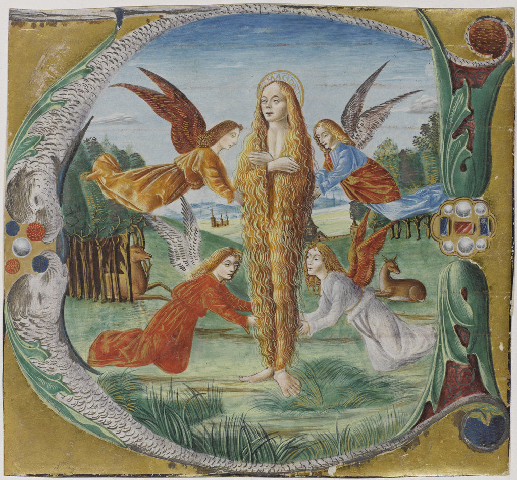 Saint Mary Magdalen surrounded by angels. Found in the collection of Musée des Beaux-Arts, Lille.