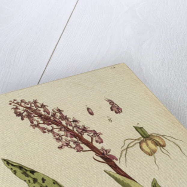 Botanical study of the 'Satyrium mas' (male satyrium or satyrion orchid). Plate 53 from Herbarium Blackwellianum, vol.1 [Centuria I], by Elizabeth Blackwell (Nuremberg, 1750).