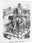 'Sawney Stops The Way', 1862. A Bill was presented to parliament which would give the Metropolitan Board of Works the authority to embank the River Thames from Westminster to Blackfriars. John Bull here is the coachman driving his carriage along the rocky embankment. In his way is the Duke of Buccleugh, opposing the passage of the carriage as he was opposing the passage of the Bill. Nonetheless, the Thames Embankment Bill received the Royal Assent in August 1862. From Punch, or the London Charivari, July 5, 1862.