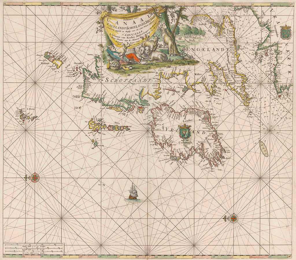 Sea chart of the coasts of England, Scotland and Ireland, Jan Luyken, Johannes van Keulen (I), unknown, 1682 - 1803