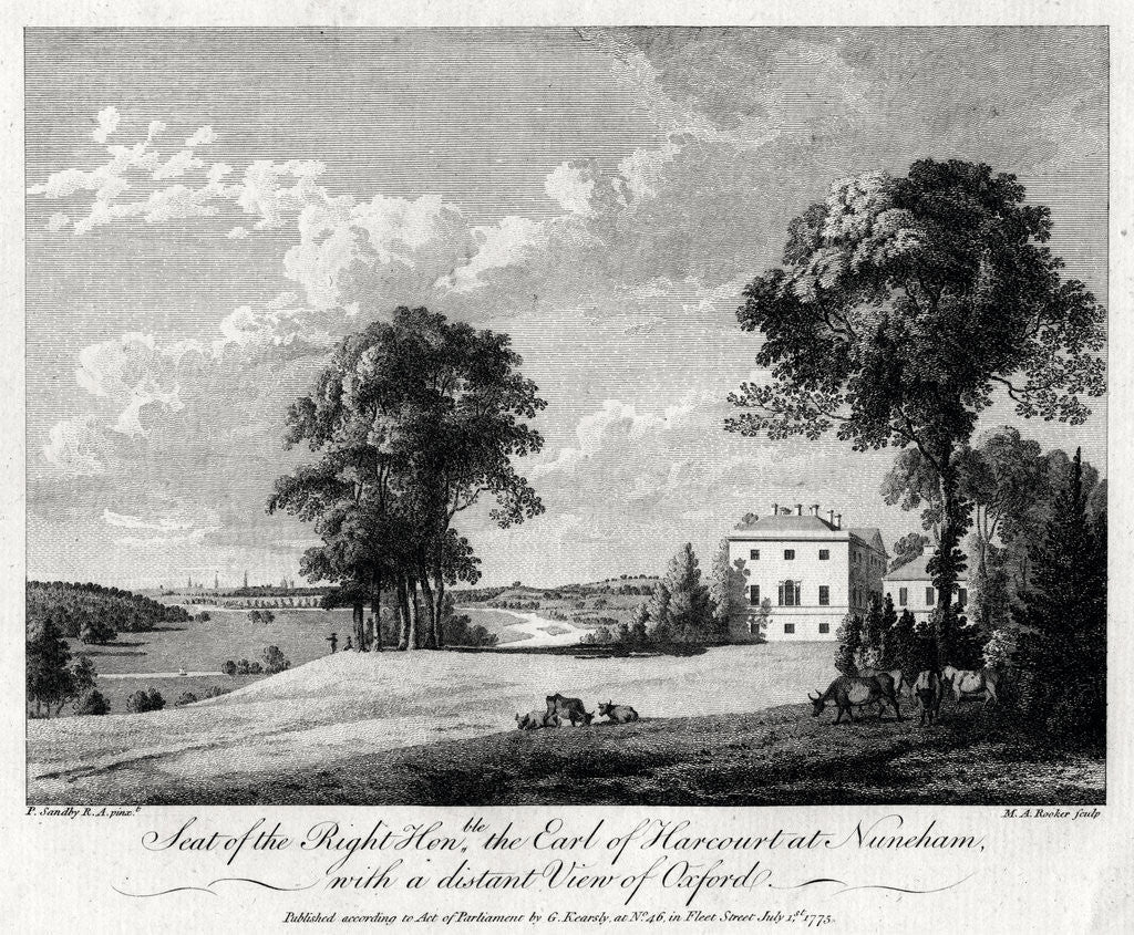 'Seat of the Right Honourable the Earl of Harcourt at Nuneham, with a distant view of Oxford', 1775.