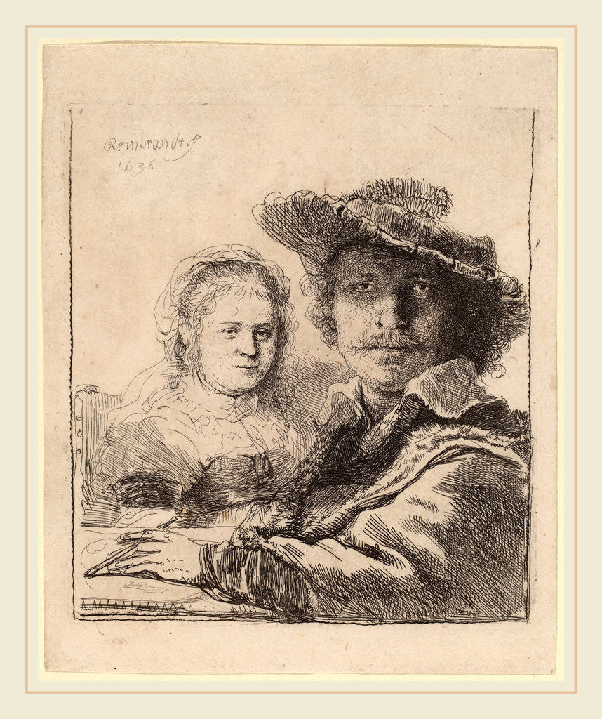 Rembrandt van Rijn (Dutch, 1606-1669), Self-Portrait with Saskia, 1636, etching
