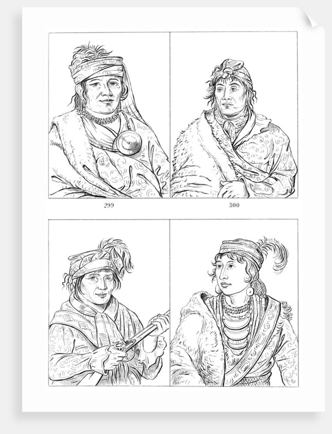 Seminole chiefs, Fort Moultrie, South Carolina, 1837-1838 (1841). Cloud, King Phillip, Coeehajo and Creek Billy, all captured in the Second Seminole War, in which the US Government tried to forcibly expel the Seminoles from their lands in Florida. A print from Letters and Notes on the Manners, Customs and Condition of the North American Indians, by Wiley and Putnam, 161 Broadway, New York, 1841.