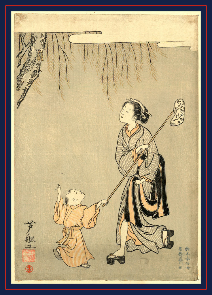 Semitori, Catching Crickets. 1765., 1 Print : Woodcut, Color ; 27.7 X 19.1 ., Print Shows a Woman and a Child Catching Crickets.