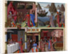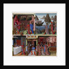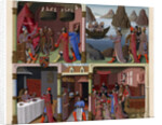 Sergius Orata and other Romans, 1473-1480. Sergius Orata pointing to the hanging baths (balneae pensiles) invented by him; Sergius Orata inspecting his artificial preserves for sea-fish; the profligate son of Aesop the tragedian feasting on priceless singing-birds; the Roman women pleading against the lex Oppia, enacted to restrain feminine luxury. From Les faits et les dis des romains et de autres gens, produced in Paris. Illustration from Illuminated Manuscripts in the British Museum, Miniatures, Borders, and Initials by George F Warner, series II, (British Museum, London, 1899).
