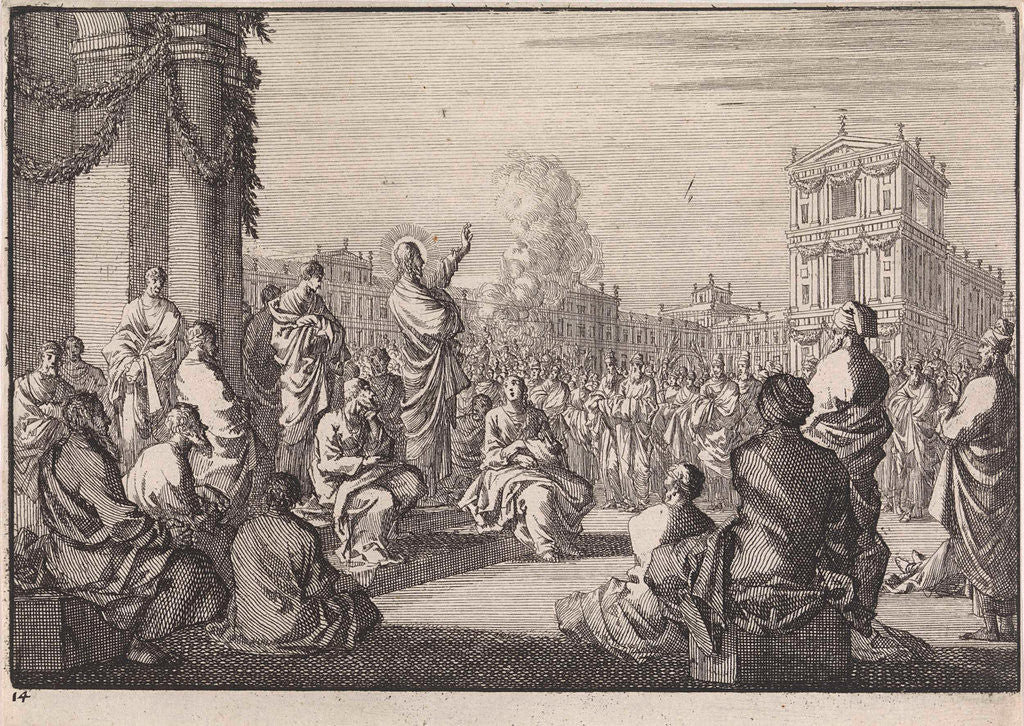 Sermon of Christ in front of the temple, Jan Luyken, 1703