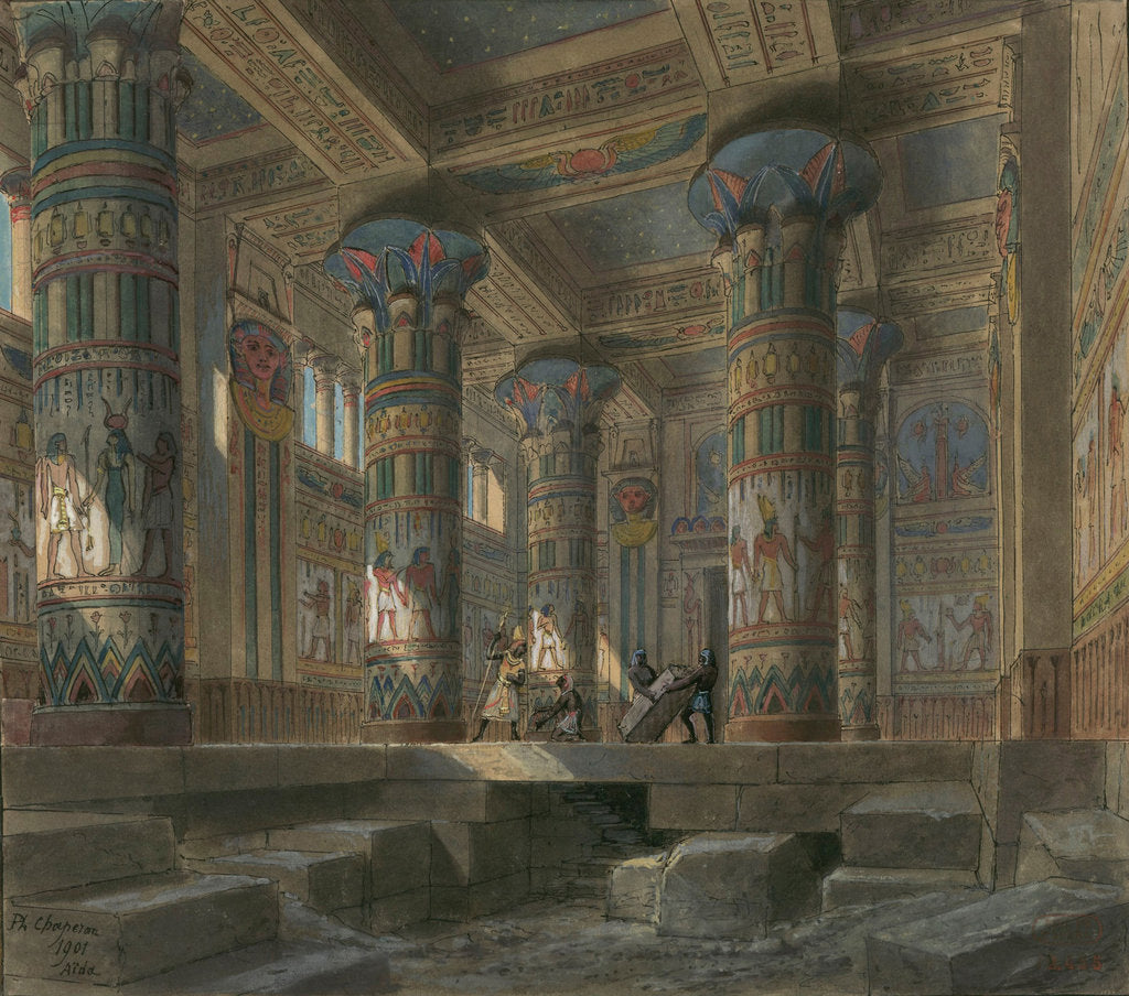 Set design for opera Aida by Giuseppe Verdi. Paris, Théâtre national de lOpéra, 1880