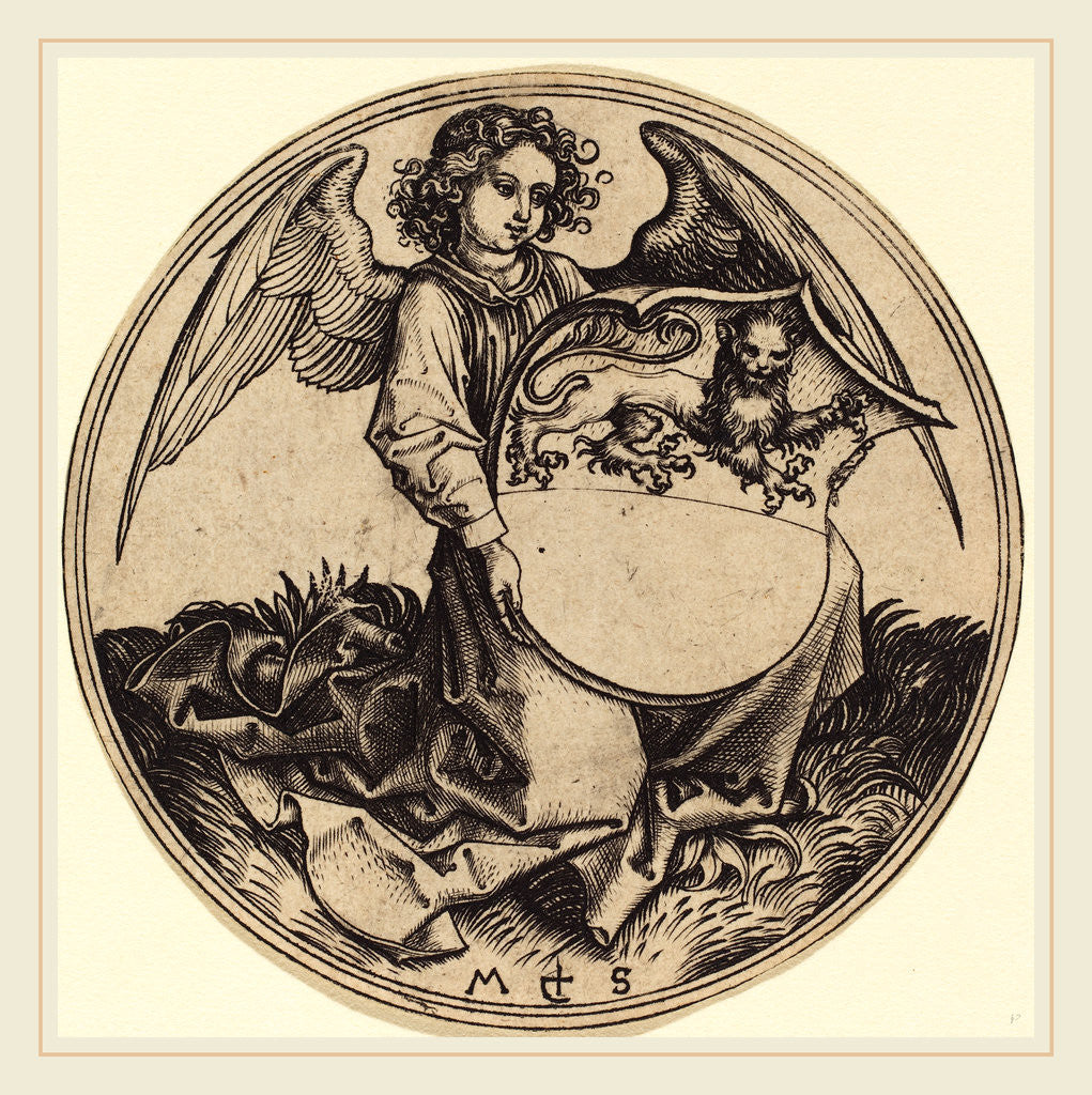 Martin Schongauer (German, c. 1450-1491), Shield with Lion, Held by Angel, c. 1480-1490, engraving