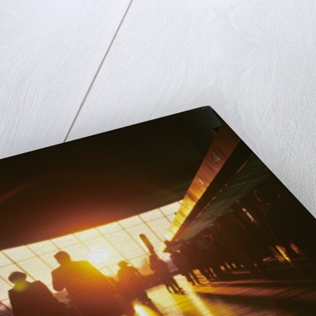 Product images of silhouetted Anonymous Passengers Walking Interior Of Airline Terminal At Sunset Dulles International Near Washington Dc Usa