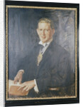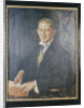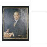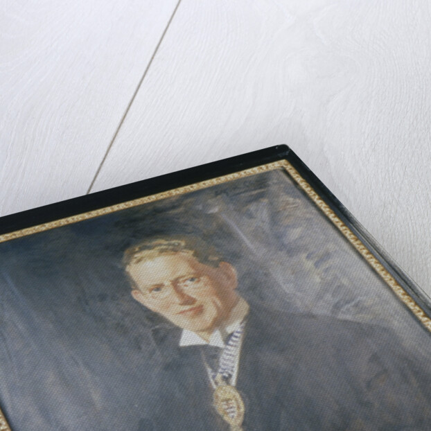 'Sir Angus Newton Scott Scott', 1932. Half-length portrait of a confident-looking man in spectacles, holding a book. Round his neck he wears the coat of arms of the City of London, suggesting that he is an official such as Alderman or Sheriff.