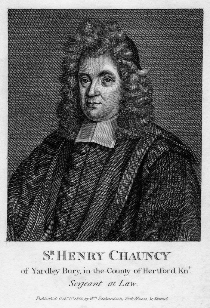 Sir Henry Chauncy, English lawyer, educator and antiquarian, (1802). Chauncy (1632-1719) published Antiquities of Hertfordshire in 1700.