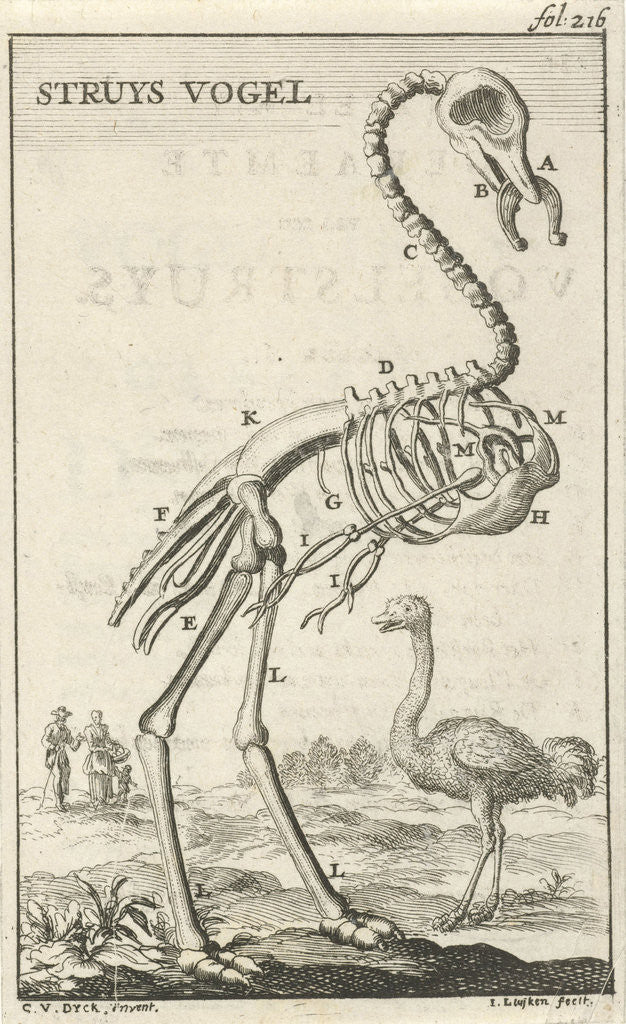Skeleton of an ostrich, Jan Luyken, Jan Claesz ten Hoorn, 1680