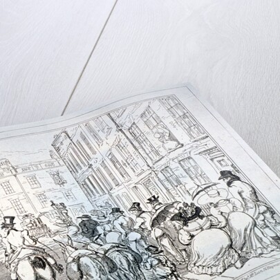 'Sketch for an Al-bum', 1835. A high wind is blowing in the same direction as the riders and pedestrians, causing the buttocks of the persons in the picture to be accentuated either by the pressure of clothing or the blowing aside of coat tails.