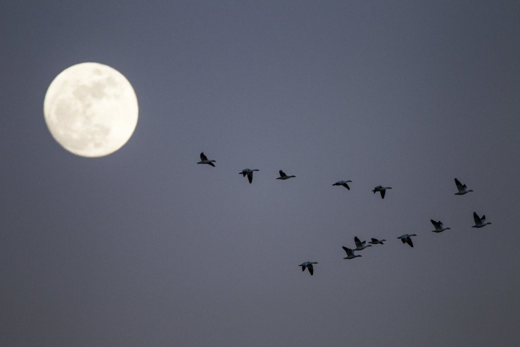 Snow Geese and Full Moon, New Mexico by Anonymous