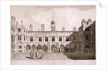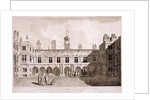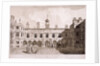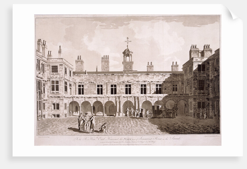 View of the inner courtyard at Somerset House, London, 1777; with a carriage and sedan chair. Somerset House was designed by William Chambers and built between 1776 and 1786.