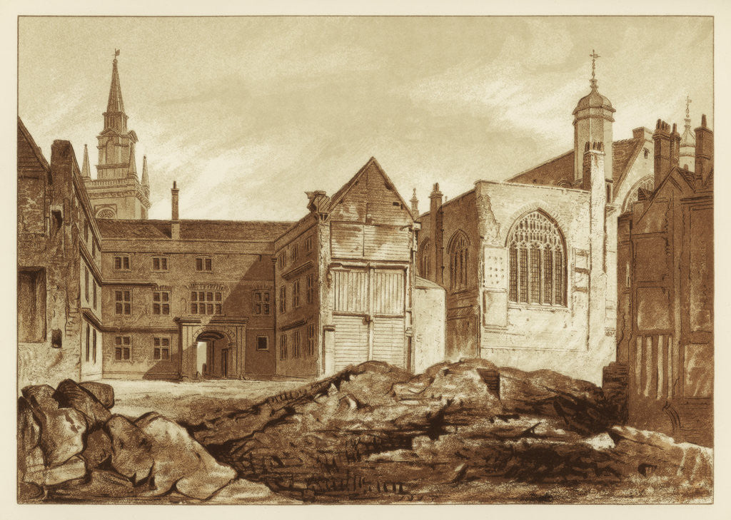 South-east view of Guildhall Chapel and Blackwell Hall, City of London, 1886. A print from Guildhall of the City of London: Its History and Associations, Corporation of the City of London, 1886.