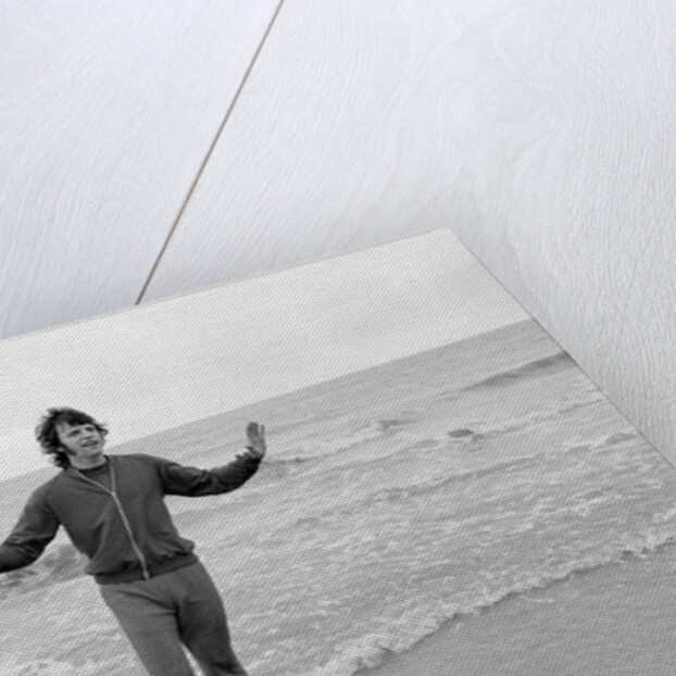 Southampton FC in training at Frinton Lodge Hotel, Frinton, Essex, 31st March 1976. Showing : Mick Channon, paddles in sea. Manage, Laurie McMenemy has a ride in a wheelbarrow, pushed by Jim Steele. Jim Steele digs for victory.