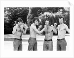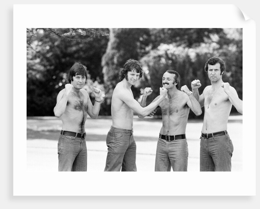 Cup Final Muscle. Southampton FC Players who have all previously played at Wembley. Jim McCalliog, Mike Channon, Peter Rodrigues & Peter Osgood. Demonstrate the mood and the muscle that they are sure will help them lift the Cup against Manchester United tomorrow. Pictured Thursday 29th April 1976.