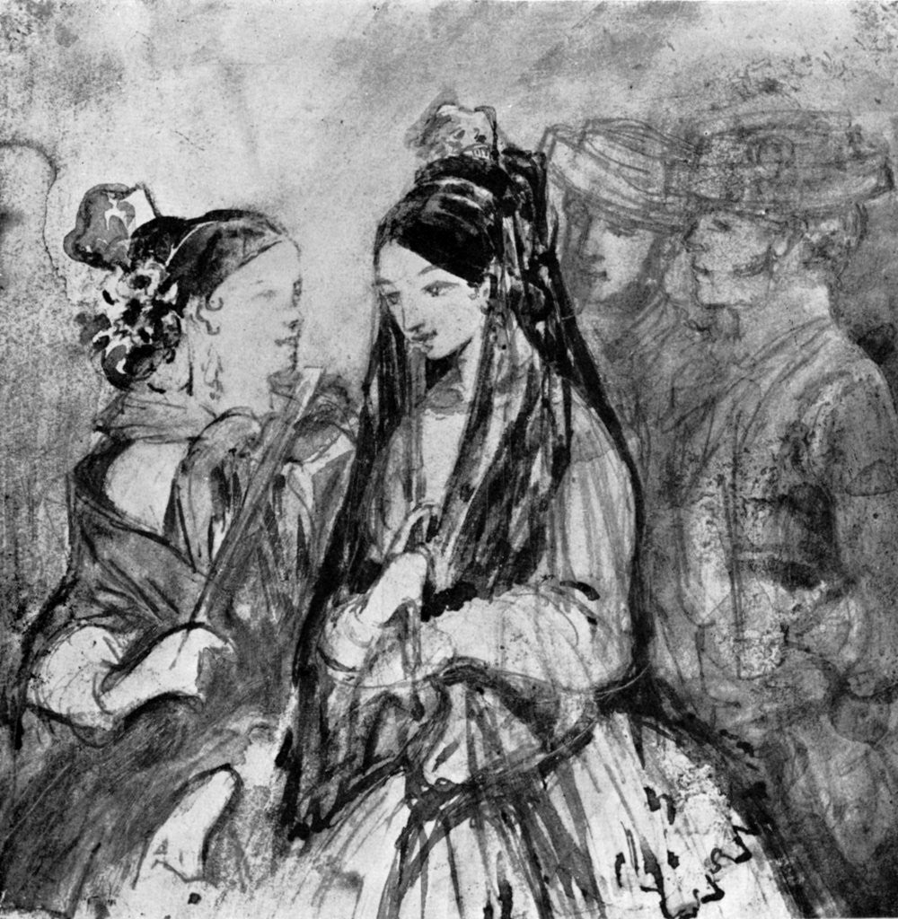'Spanish Ladies', 19th century, (1930). Illustration from The Painter of Victorian Life, a study of Constantin Guys with an introduction and a translation of Baudelaire's Peintre de la Vie Moderne, by P G Konody, (The Studio Ltd, London, 1930). From the collection of the British Museum.