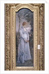'Spring', 1876; showing a woman, with a dove resting on her shoulder, in a meadow.