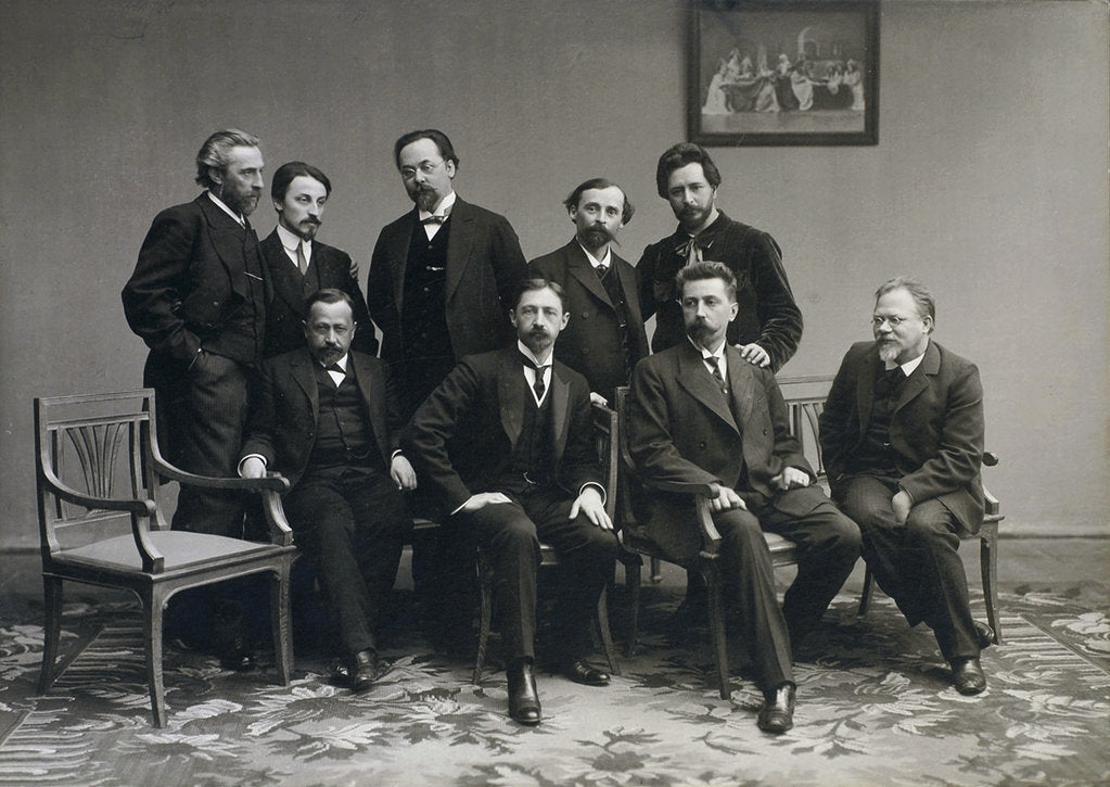 'Sreda' ('Wednesday'), Russian literary group, 1890s. Sreda was founded in 1899 by Nikolay Teleshov. It was named after the day on which they held their weekly meetings at Teleshov's house in Moscow. The group continued to meet until 1916. Found in the collection of the Institute of Russian Literature IRLI (Pushkin-House).