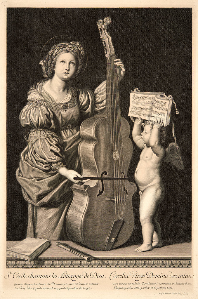 Etienne Picart (aka Le Romain, French, 1632 - 1721) after Domenichino (aka Domenico Zampieri Domenichino, Italian, 1581-1641). St. Cecilia Singing Praise to God, ca. 1675-1695. Engraving on laid paper.