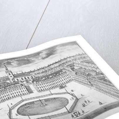St James's Square from the south, London, 1754. Aerial view of the square showing horse-drawn carriages and sedan chairs.