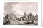 St Mary Abbots, Kensington, London, 1824; south east view of St Mary Abbots, with figures and horse drawn carriages in the street.