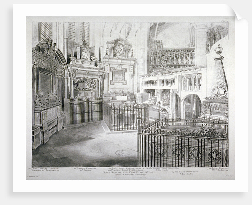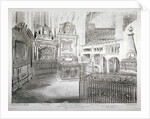 St Paul's Chapel, Westminster Abbey, London, 1812. View of the east side of the chapel, showing memorials to members of the nobility, with a key below.