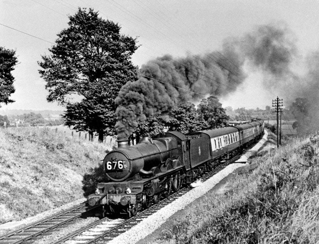 A steam locomotive engine making its way through the Warwickshire countryside, circa 1950.