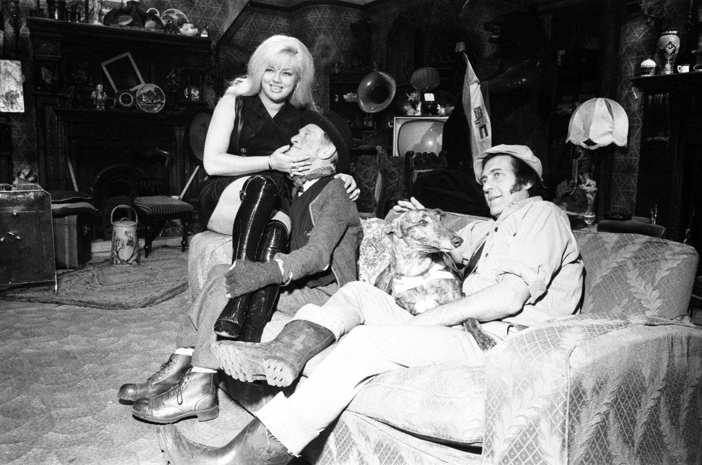 Steptoe and Son photocall to announce that a second feature film of the successful comedy series is to be made. Called 'Steptoe and Son Ride Again' the film - released 1973 - stars Wildred Brambell as Albert Steptoe, Harry H Corbett as his son Harold Steptoe, and Diana Dors, pictured Thursday 15th February 1973. *** Local Caption *** 15th February 1973