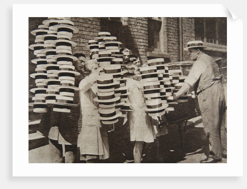 Straw hat factory, Luton, Bedfordshire, 1930. Luton was the centre of the straw hat industry. The hats became fashionable again in 1930 after the Prince of Wales wore one.
