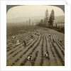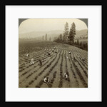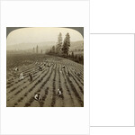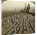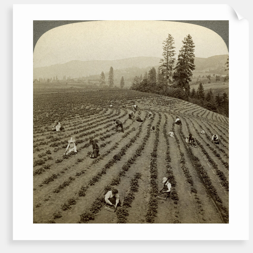 Strawberry picking, Cedar Creek Farm, Hood River Valley, Oregon, USA. Stereoscopic card detail.