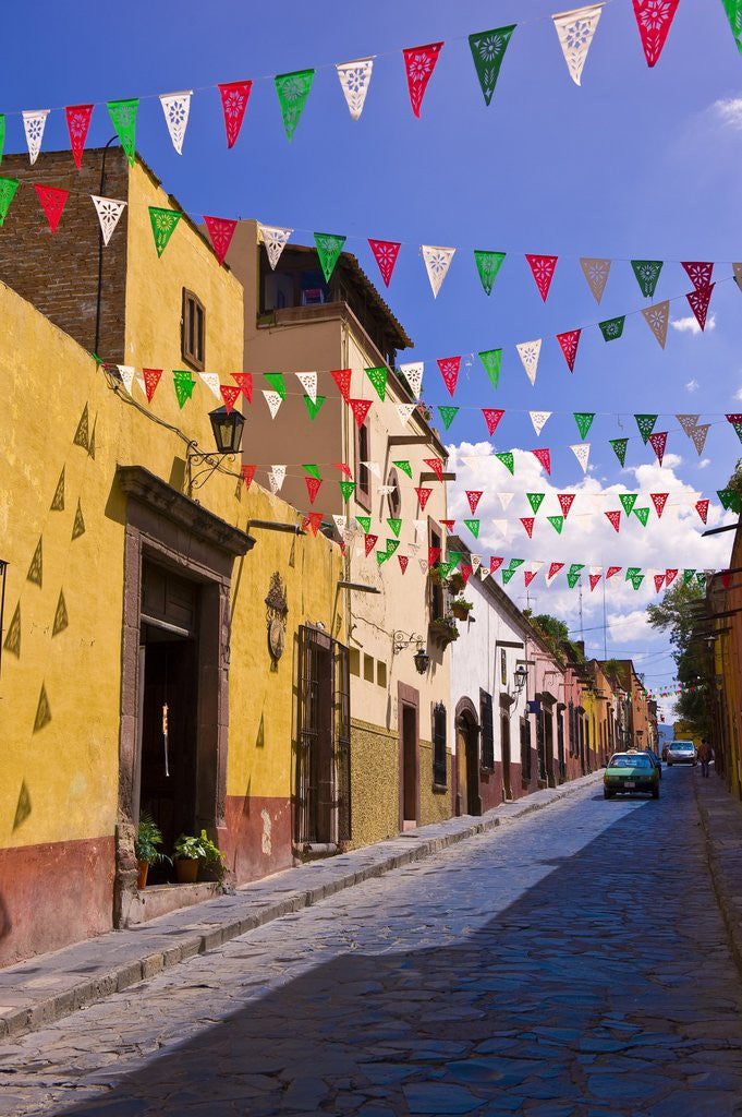 Product images of Street in San Miguel de Allende decorated with colorful flags