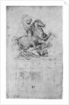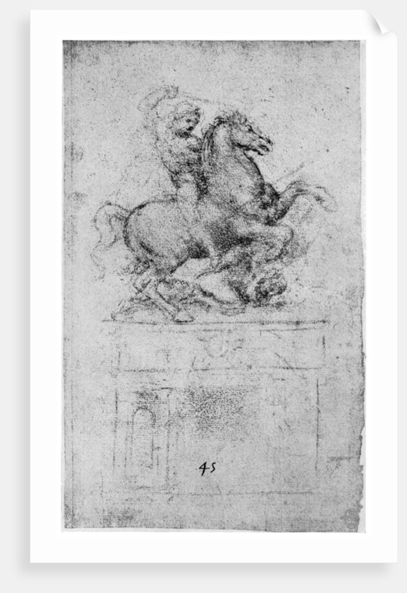 Study for the 'Trivulzio Monument', c1508 (1954). In 1508 Gian Giacomo Trivulzio, a Milanese aristocrat and military commander and governor of the city, commissioned Leonardo da Vinci to sculpt an equestrian statue for his tomb. Leonardo produced designs for the statue but it was never realised. Found in the collection of the Royal Library, Windsor Castle, Windsor. A print from Leonardo da Vinci by Ludwig H Heydenreich. (London, 1954).