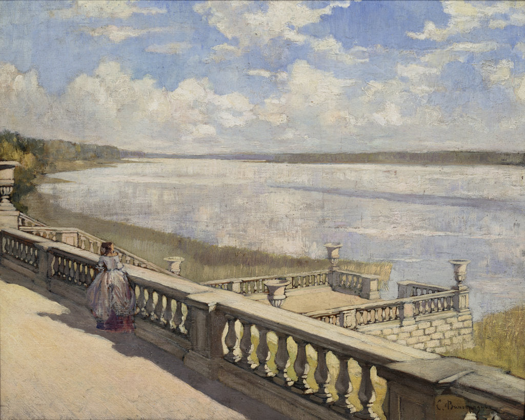 Sunny day. A lady at the balustrade, 1908. Found in the collection of the State Tretyakov Gallery, Moscow.