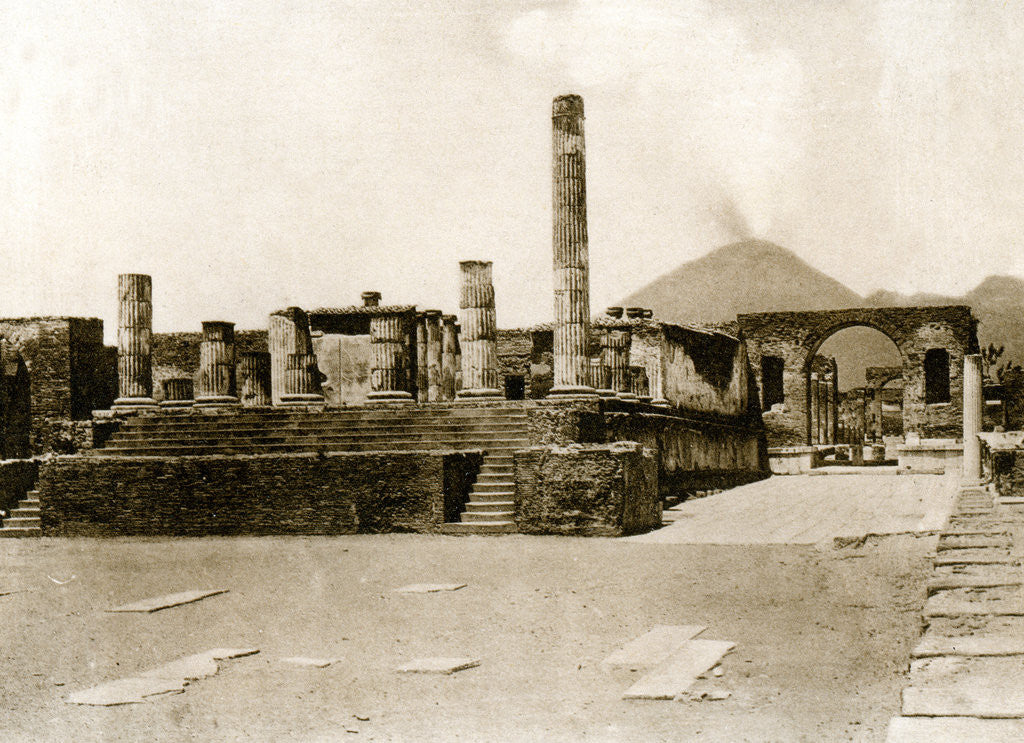 Tempio di Giove, Pompeii, Italy, c1900s. Mount Vesuvius can be seen in the background.