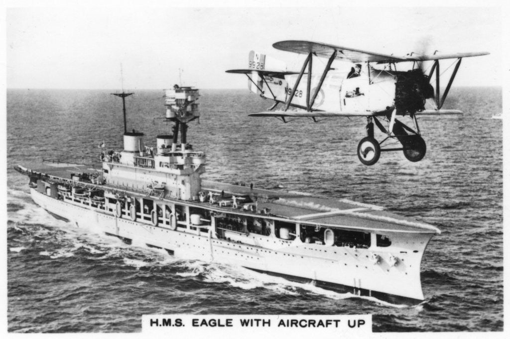 Product images of The aircraft carrier HMS Eagle and a Fairey Flycatcher aircraft