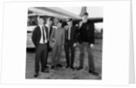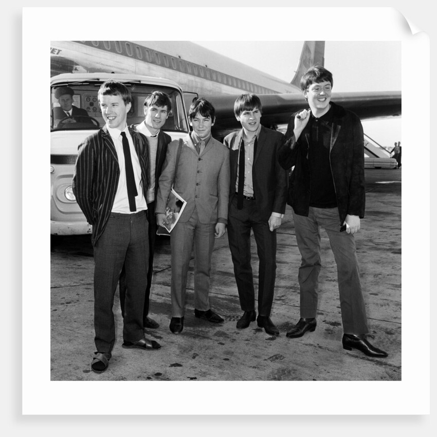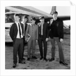 British rock group The Animals leaving London airport for Tel Aviv. Left to right: John Steel, Hilton Valentine, Eric Burdon, Alan Price and Chas Chandler. 22nd September 1964.