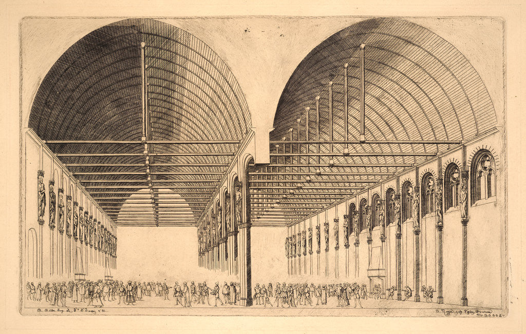 Charles Meryon (French, 1821 - 1868) after Jacques Androuet Du Cerceau the Younger (French, 1550 - 1614). The Ante- Chamber of the Old Palace of Justice (Salle des Pas-Perdus à l'Ancien Palais-de- Justice, Paris), 1855. Etching. Fourth state.